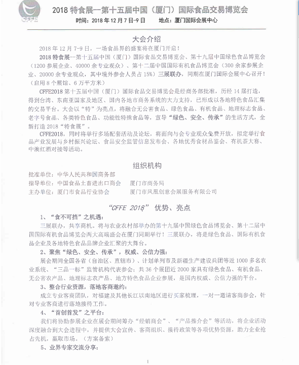 2018年特食展--第十五届中国(厦门)国际食品交易博览会介绍